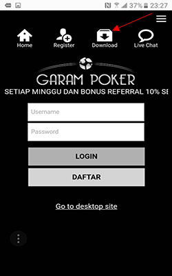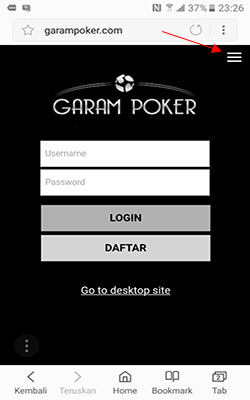 9. Ketik garampoker.com / link resmi alternatif kami lainnya pada kolom yang diberi tanda panah, masukkan login ID dan password anda dan selamat menikmati permainan-permainan kami