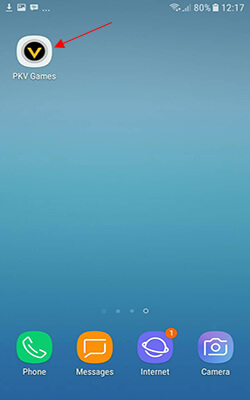 7. Setelah proses instalasi sudah selesai, maka akan muncul app PKV Games seperti gambar di bawah dan klik untuk masuk