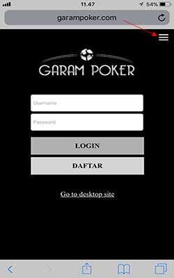 1. Masuk ke website garampoker.com / link resmi alternatif kami lainnya dan klik menu dropdown seperti gambar di bawah