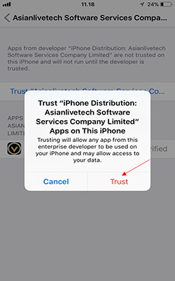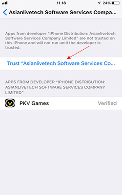 13. Setelah itu akan muncul pilihan, Klik "Trust" dan kembali lagi ke app PKV Games tadi