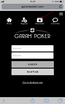 16. Ketik garampoker.com / link resmi alternatif kami lainnya pada kolom yang diberi tanda panah, masukkan login ID dan password anda dan selamat menikmati permainan-permainan kami